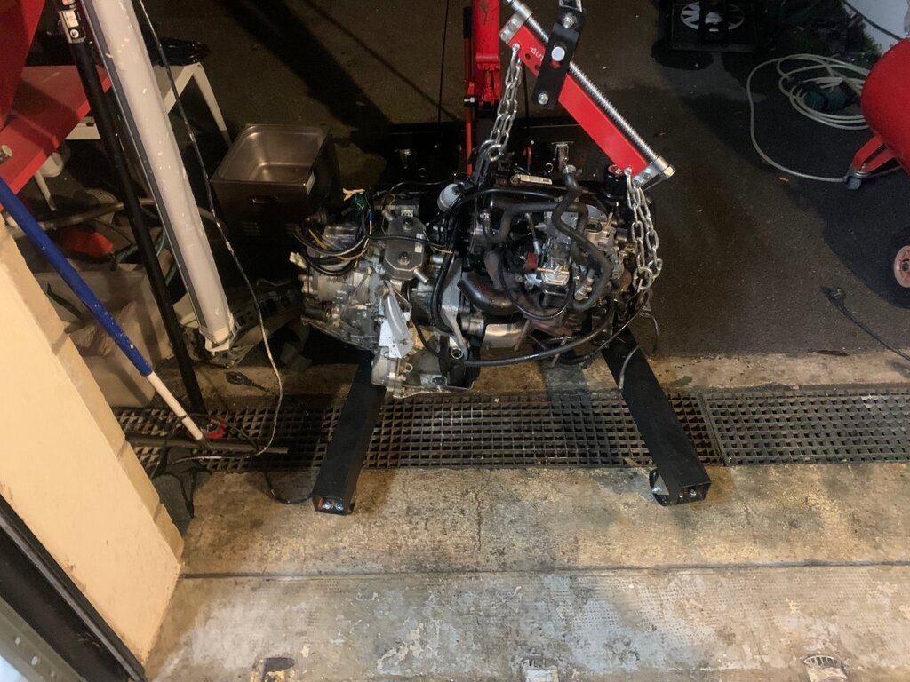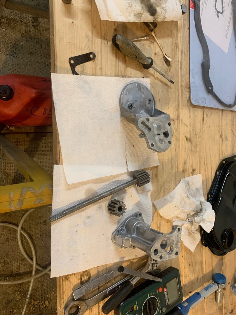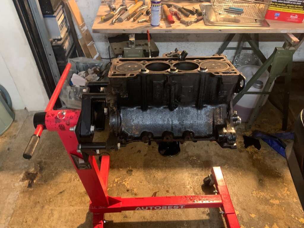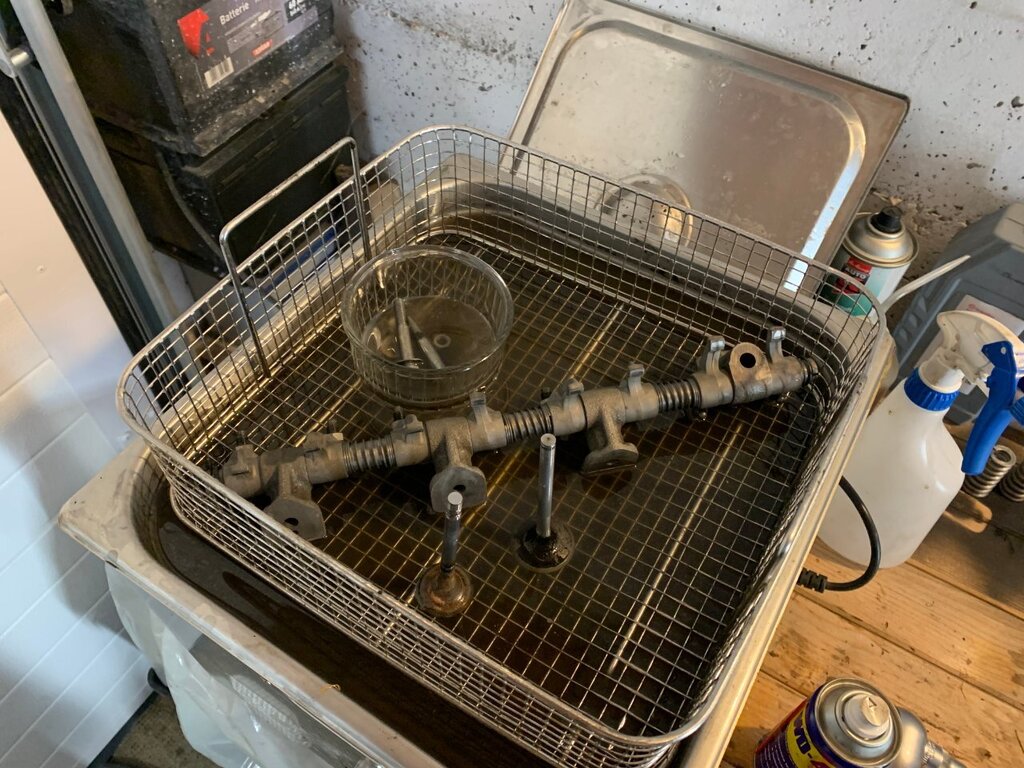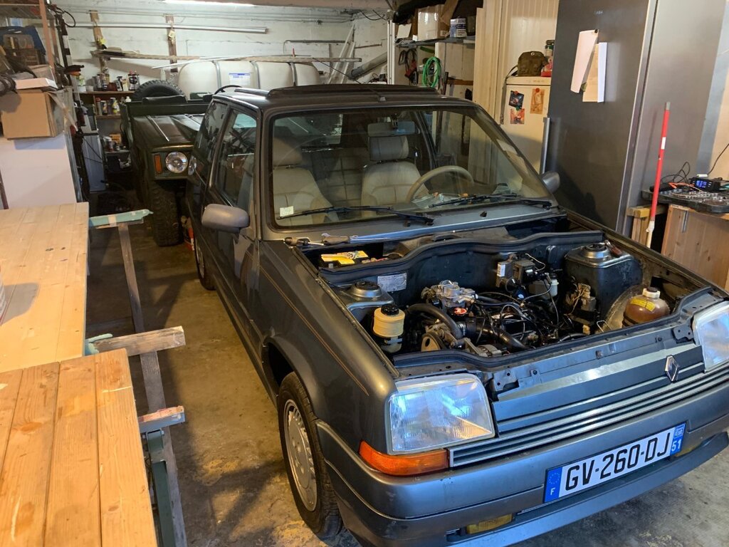 bonjour à tous, sa va être long je préviens bonne lecture . partie 1 : contexte (pour ceux qui aime la lecture épistolaire ) partie 2 : voiture ( pour ceux qui préfères les magazines ou il y as plus de photo que de lecture ) partie 3 : récap des travaux fait ou restant ( pour ceux qui préfère les sms rapide ) partie 1 : ayant pris un superbe de plaisir avec ma défunte automatique dite toto quelle repose en pièce (malheur d'avoir croisé un lampadaire qui as traversé sans regardé si si je vous le jure) je comptait en reprendre une un jour , tout s’accélère lorsque que malheur madame qui attend sagement à un feu suivis de 3 bagnole et tout derrière derrière une c3 qui a voulus joue aux quille... 8 bagnoles touché résultat train AR tordus sur la polo de madame voiture immobilisé en attendant qu'elle soit réparé. Donc besoin d'une voiture dans l'urgence madame ne conduisant que des boite auto je rassure elle as le permis manuelle mais je l'ai jamais vus passer une vitesse 😂la joie de passer le permis sur des voiture neuve et quand sa on arrive sur une autre voiture il y as pas les bip bip sa accélère pas tout seule quand on débraye ... donc mon dévolus ce porte sur une super 5 automatique dans le but de l'utilisé après que madame ait récupéré sa voiture je lui fait donc essayé la gt l'embrayage à pris 10mkm d'un coup 😆 non je rigole elle se démerde quand même un peu j'aime bien la taquiner les freins sa va l’accélérateur sa va madame est satisfaite mais le soucis que je voyais venir la direction et oui en roulant sa va mais à l’arrêt compliqué. donc gros doute sur la sup5 pour madame je regarde les Clio 1 bva ,106 ,saxo ,bof bof surtout si c'est pour la garder 6mois et la revendre et certaine n'avait pas la DA non PLUS jus qu’as je tombe sur une sup baccara BVA et la sa fait tilte ! les bacc ont tous la DA de série ! donc je cherche j’allais pas prendre celle vus en 1er 10 000 euros avec 200mkm je croit elle est toujours en vente a l'heure actuelle 🤭on m'as toujours dit faut croire en ses rêve ! bonne chance au vendeur . je tombe sur une annonce pas sur coincoin sur paru-vendus depuis 3 mois je tente, sa mord parfait le lendemain on vas la voir surprise 2eme main toute fraiche depuis janvier 2024 120 mkm historique Renault jusque 90m km carrosserie sans rouille même le dessous de la batterie la boite paraissait neuve (j'y reviens plus tard ) corrosion marque sur le CT (je l'as cherche encore a l'heure actuelle cette corrosion) a l’essai grosse surprise la sup a rien dans le sac mais rien de chez rien 90 pieds dans la tôle la boite répond super bien très souple équipé alarme serpistar vitrage complet d origine gravé non repeinte excepté les extension ou le vernis s’écaille donc on se décide de la prendre c'est la que ce qui devait bien ce passé a finit en ça c'est mal passé arrivé a la maison grosse fumé moteur début de feu le moteur qui semble rincé alors je souhaite chopper la réf du moteur et en retrouver surprise c'est pas un c2j dedans mais un c1g qui tournait avec le double corps, facture de la vidange 5w40 dedans 100km depuis la vidange de faite qui ont suffit a décoller les impureté et résidus dans le bloc a bouché la crépine d'huile et les segment rincé retour de compression dans l'huile voila le résultat une belle merde qui commence bien. partie 2 la sup ! super 5 baccara BVA kilométrage 128 000 km état corrosion RAS carrosserie quelque poc et rayure voiture de mamie oblige kit extension a repeindre niveaux travaux effectué dessus il as fallu déposer l'ancien moteur et nettoyer la baie moteur la belle au chaud prêt a se voir opérer (le véhicule derrière est un iltis183 de 81) dépose du groupe motopropulseur ensuite on attaque la remise en état du c2j plutot en très bon état les stries dans les chemises sont encore bien présente et il compressait plus que bien donc mon travail vas plus ce concentré sur la culasse kilométrage annonce 120mkm dépose des soupape contrôle des guides trop de jeu a échappement dépose de l'arbre à came et de la chaine préparation du bac à ultrason petite démo sur la culasse pour montrer la différence seul regret du bac a ultrason ? j'aurais dus le prendre plus grand XD. on en profite pendant ce temps on clean la boite toto et j'essaye de vidanger le convertisseur à part donner une raison pour que madame se foute de moi en me voyant secouer le bestiau dans tout les sens comme une macarena j'ai récupéré à peine un demi verre donc je remet le max d'huile propre dedans et de retour sur la bva en regardant la BVA celle ci est de 1993 donc déjà changé parfait la crépine était aussi d'origine un peu de limaille mais pas bcp. je m’aperçois que mon échangeur est en inox un bon point je souffle dedans sa passe difficilement dans un sens mieux dans l'autre après recherche je me conforte à me dire que c'est normal l'histoire du sens tout ci tout ça on verras la suite après ! j'en profite nettoyage de la baie moteur pour enlever le gras on c'est tous pourquoi les berceaux des sup5 ne rouille pas j'en profite accélération du régime ne marchais pas le câble est coupé a ras du contacteur de pression celui étant introuvable j'essaye de ressouder le fil tant bien que mal plus petite thermo assez rigide pour le protéger suspens au remontage d’ailleurs sacré histoire ce système de double courroie avec le petit galet de tension on vois que c'est dus j'essaye de trouver comment adapter sa à l’époque j'en profite le roulement semble dur allez hop on le change pas de photo du galet oublis de ma part on en profite on check la pompe a huile c'est neuf ultrason et sa repars ! peinture du cache en thermolaquage ainsi que le support de filtre a essence, le bloc moteur peinture la bombe un truc a 6 euros de chez carter truc sa tiens sa tiens sa tiens pas sans regret on laisse sécher sa et demain on remonte ! la distri remonté et caler les c