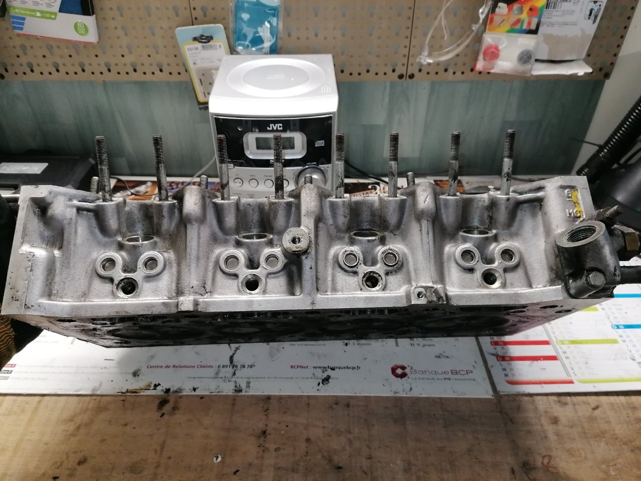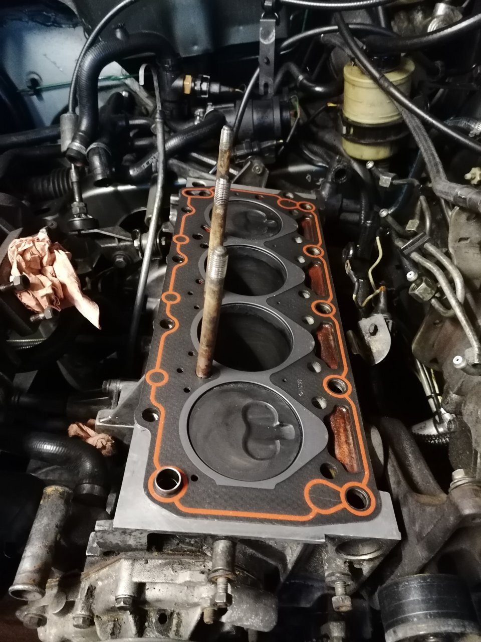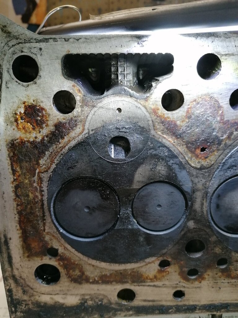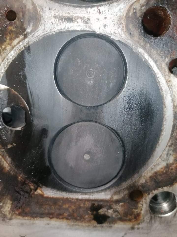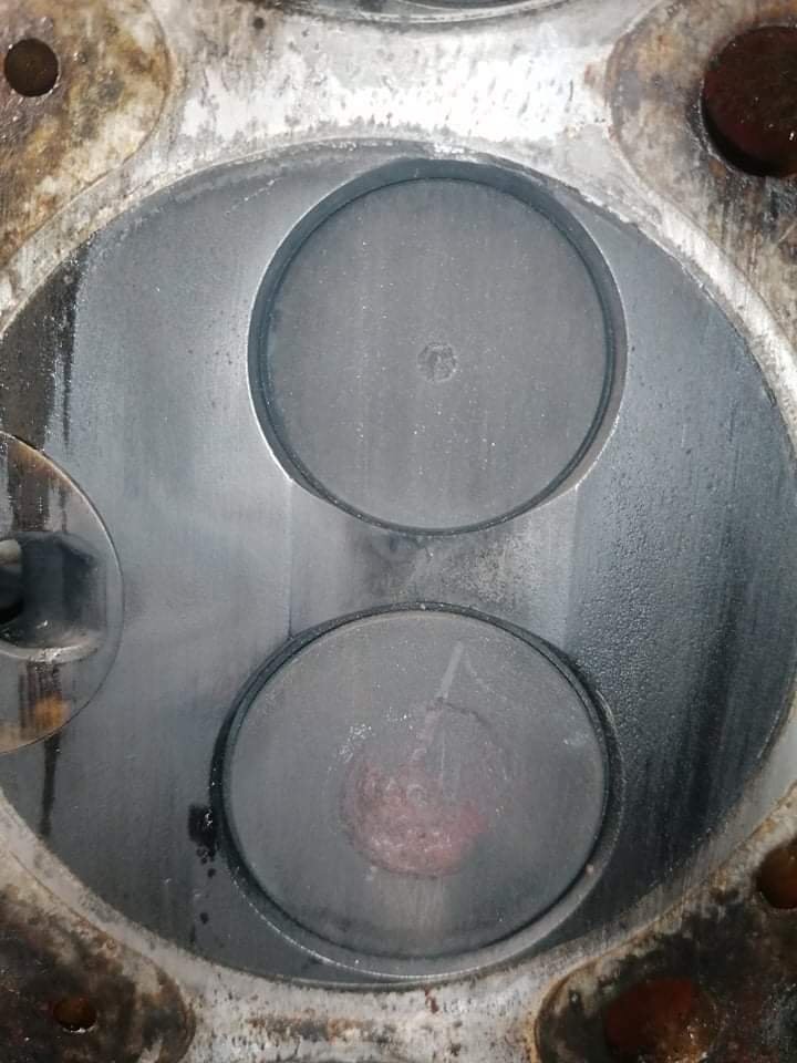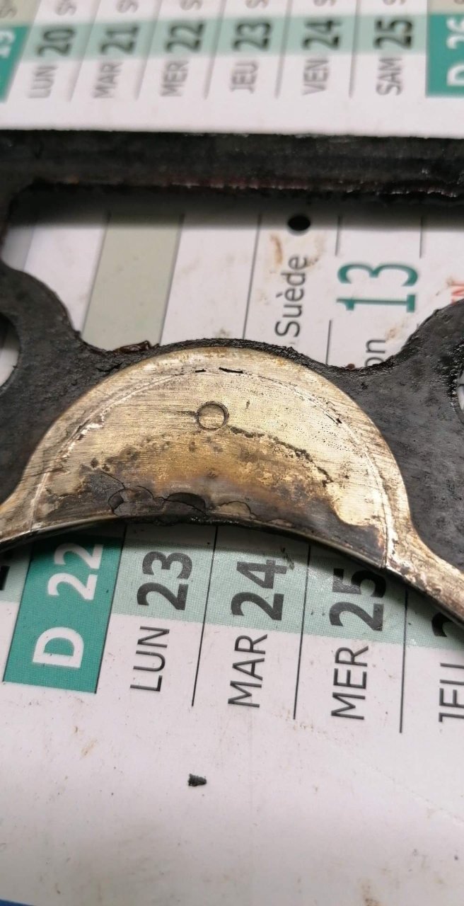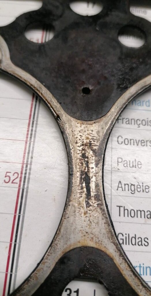 Regardes au niveau des pré chambres 👀😅 Je m'embête même pas à la contrôler ! La voiture a surchauffée à mort. J'ai roulé sans eau 4 bornes. La culasse est fendue entre les soupapes. Et doit être bien tordue. Parce que j'ai essayé de contrôler la planéité. J'ai pris une règle métal et un jeu de cales. Le maximum autorisé c'est 0.05. Je passe par endroits une cale de 0.15 👀 Donc j'en ai acheté une d'occasion en bien meilleur état. Demain elle part à l'épreuve.